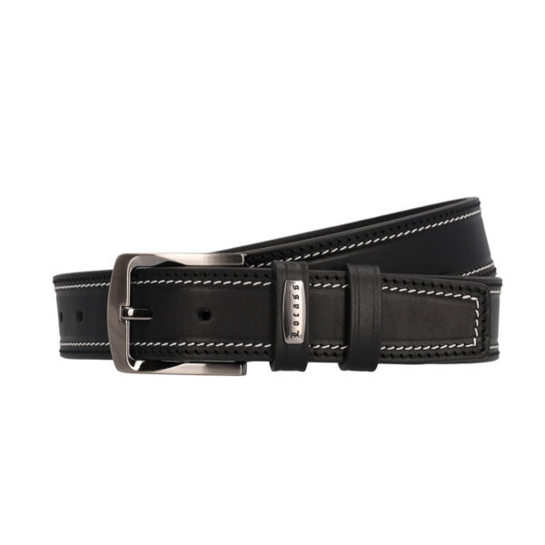 Muški kožni kaiš od prirodne glatke kože iz jednog komada – krupona leđa, u crnoj boji sa braon i crnim kontrastnim štepom. Širina kaiša 38,5 mm, uz kvalitetnu metalnu kopču u black nikl finišu. Kaiš poseduje pločicu sa LOCASS logom na gajci i šraf sa logom, kao i mogućnost jednostavnog skraćivanja. Idealan izbor za svakodnevne i elegantne kombinacije. Proizvod dolazi u originalnoj ambalaži.