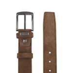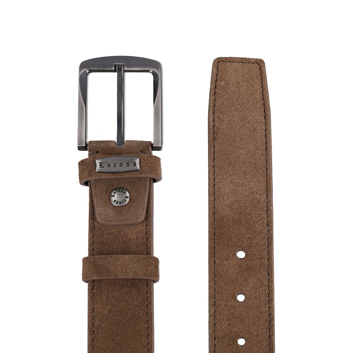 Muški kožni kaiš izrađen od prirodne velur kože (prevrnuta koža) u elegantnoj braon boji. Kaiš širine 38,5 mm poseduje kvalitetnu mat nikl kopču, metalnu pločicu sa LOCASS logom na gajci i šraf sa logotipom koji omogućava jednostavno skraćivanje kaiša. Moderan i kvalitetan kožni kaiš idealan za svakodnevno nošenje.