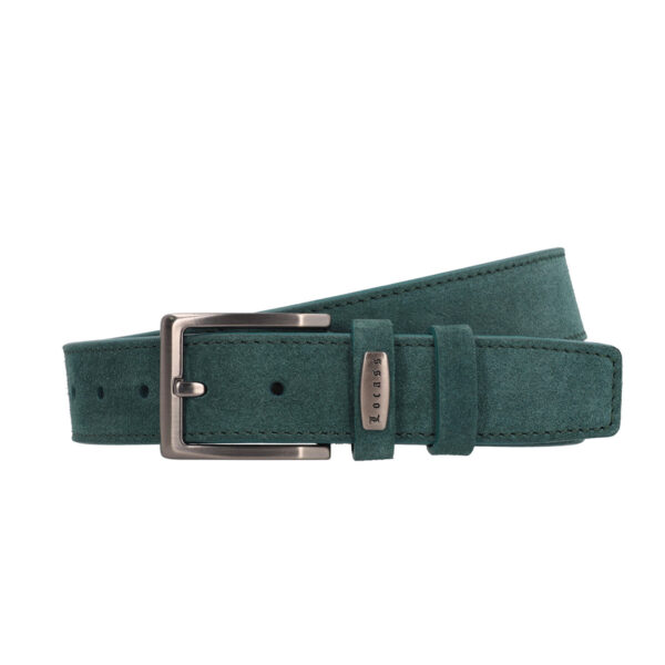 Muški kožni kaiš izrađen od prirodne velur kože (prevrnuta koža) u elegantnoj petrolej zelenoj boji. Kaiš širine 38,5 mm ima kvalitetnu metalnu kopču u mat nikl finišu, dekorativnu metalnu pločicu sa LOCASS logom na gajci i šraf sa logotipom koji omogućava jednostavno skraćivanje kaiša. Moderan i kvalitetan kaiš koji se savršeno uklapa uz svakodnevne i elegantne kombinacije.